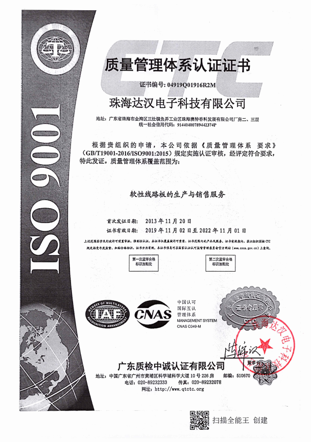 达汉通过了ISO9001:2015 ,ISO14001:20…