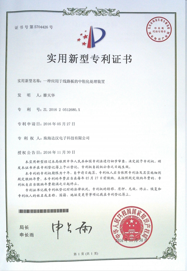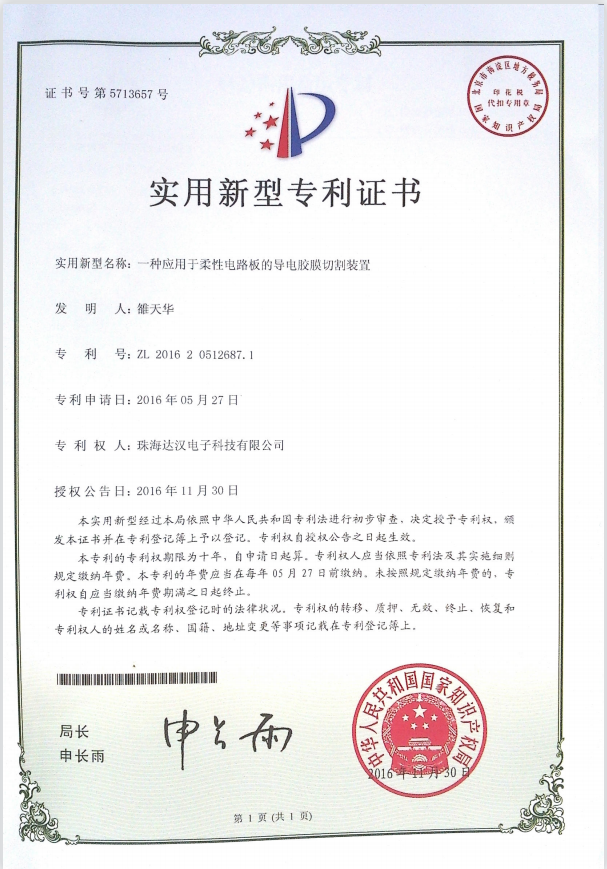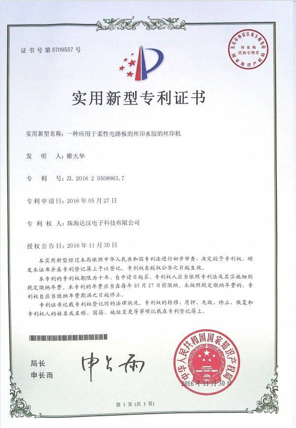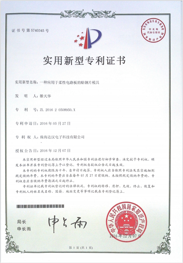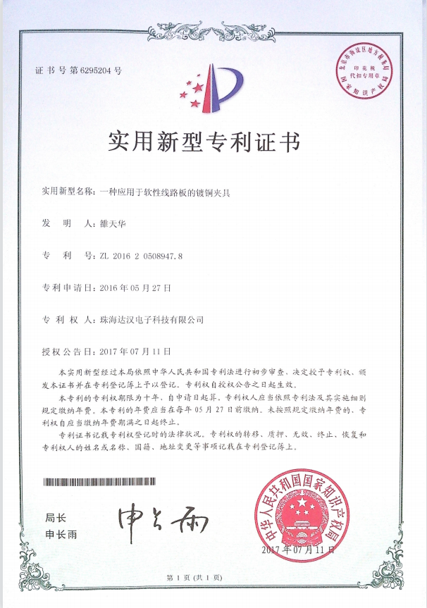 达汉所获得7种新型专利